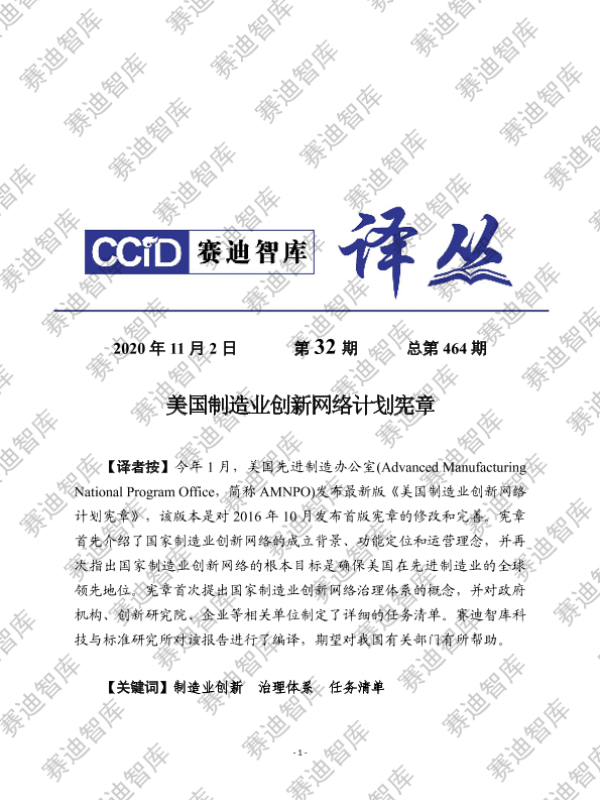 【美国先进制造办公室 (Advanced Manufacturing National Program Office,简称 AMNPO)】【20201102】美国制造业创新网络计划宪章-16页 政策文件