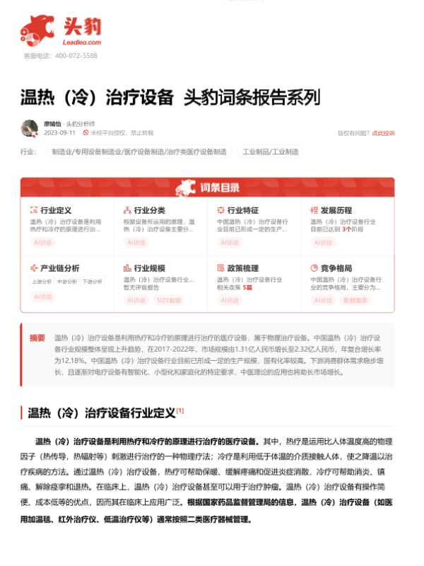 【头豹研究院】【20230911】温热(冷)治疗设备 头豹词条报告系列-19页 行业研究