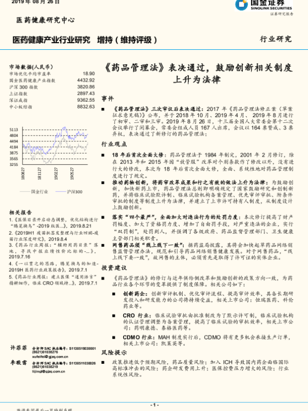 【国金证券】【20190826】医药健康产业行业研究:《药品管理法》表决通过,鼓励创新相关制度上升为法律-8页 行业研究