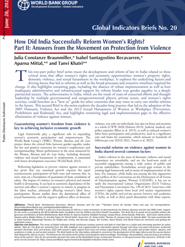 【World Bank】【2025】How Did India Successfully Reform Women’s Rights? Part II Answers from the Movement on Protection from Violence-7页 政策文件