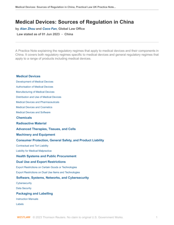 【环球律师事务所】【2023】Medical Devices Sources of Regulation in China-18页 指南