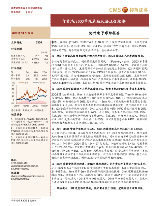 【海通证券】【20201017】台积电20Q3季报总结及法说会纪要-13页 财报
