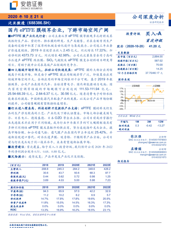 【安信证券】【20201021】国内ePTFE膜领军企业,下游市场空间广阔-26页 行业研究