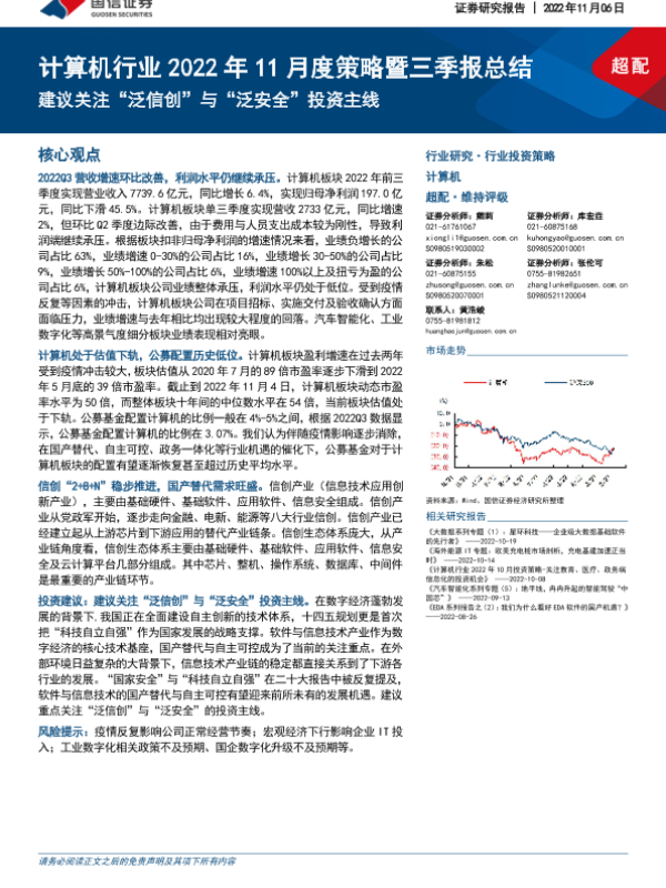 【国信证券】【20221106】计算机行业2022年11月度策略暨三季报总结-27页 行业研究