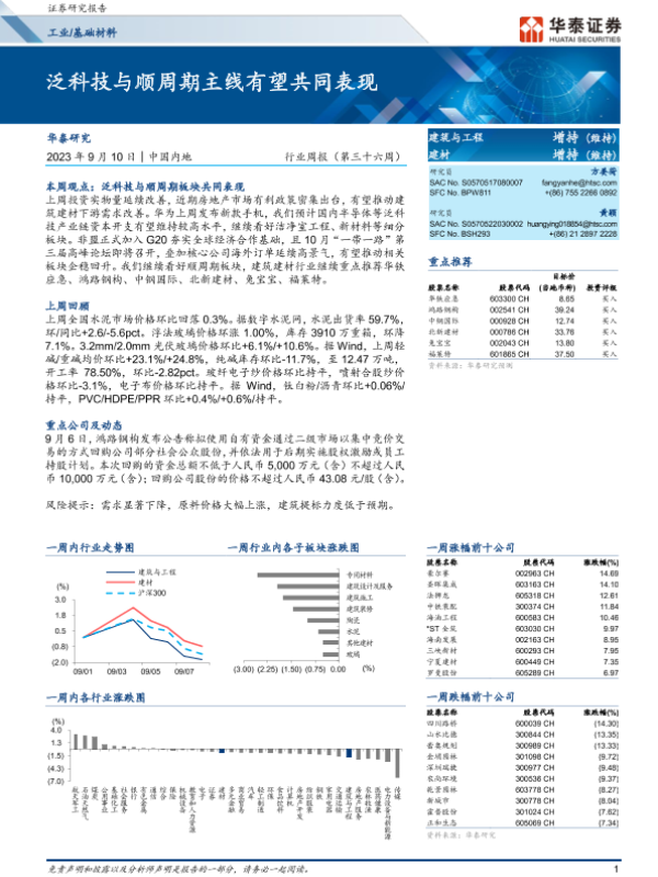 【华泰证券】【20230910】工业基础材料行业周报:泛科技与顺周期主线有望共同表现-13页 行业研究