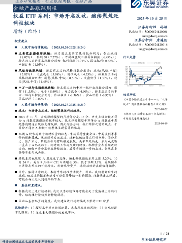 【东吴证券】【202510】权益 ETF系列:市场开启反攻,继续聚焦泛科技板块-21页 证券期货研究报告