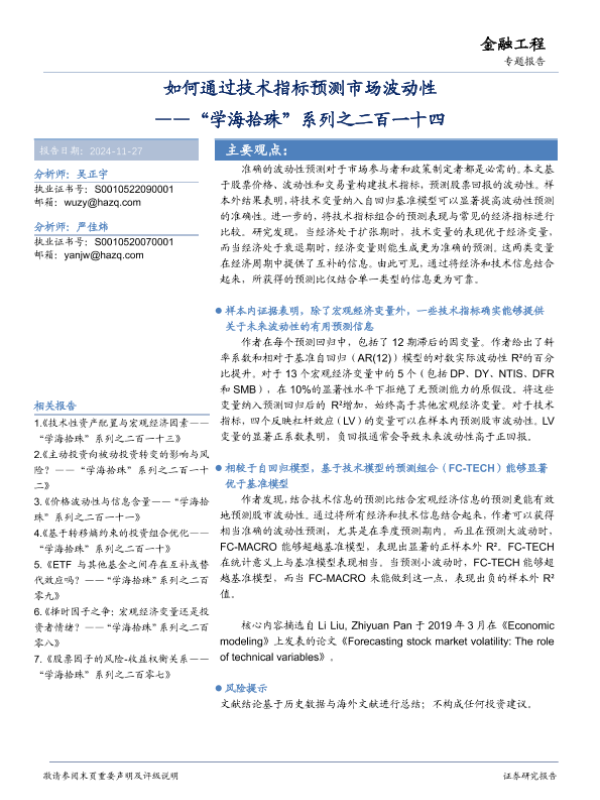 【华安证券】【20241127】如何通过技术指标预测市场波动性——“学海拾珠”系列之二百一十四-20页 行业研究