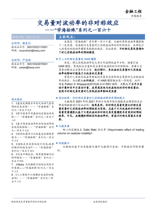 【华安证券】【20230927】交易量对波动率的非对称效应——“学海拾珠”系列之一百六十-16页 行业研究