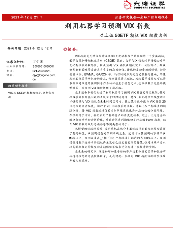 【东海证券】【20211221】利用机器学习预测VIX指数,以上证50ETF期权VIX指数为例-24页 行业研究