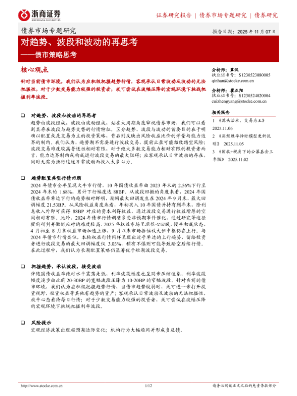 【浙商证券】【2025】债市策略思考——对趋势、波段和波动的再思考-12页 证券期货研究报告