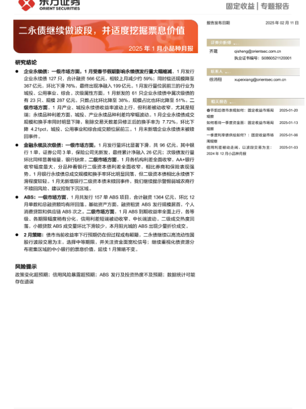 【东方证券】【20250211】2025年1月小品种月报:二永债继续做波段,并适度挖掘票息价值-18页 行业研究