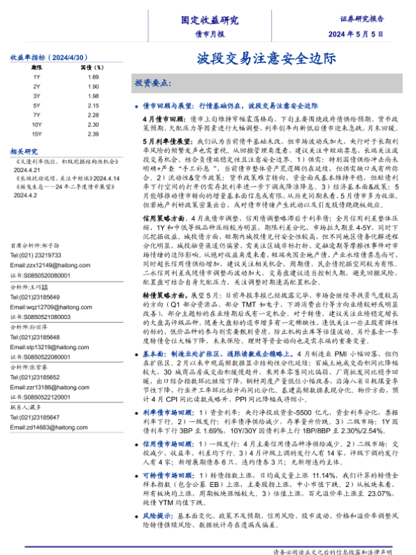 【海通证券】【20240505】债市月报:波段交易注意安全边际-27页 行业研究