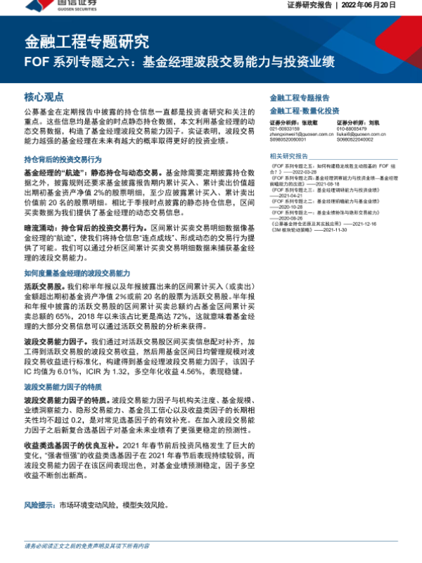 【国信证券】【20220620】金融工程专题研究:FOF系列专题之六,基金经理波段交易能力与投资业绩-27页 行业研究
