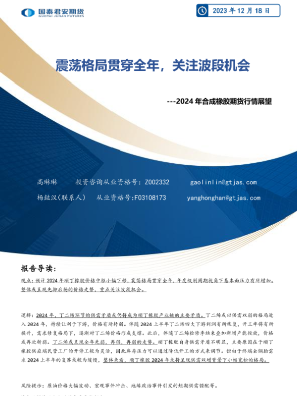 【国泰君安期货】【20231218】2024年合成橡胶期货行情展望:震荡格局贯穿全年,关注波段机会-21页 行业研究