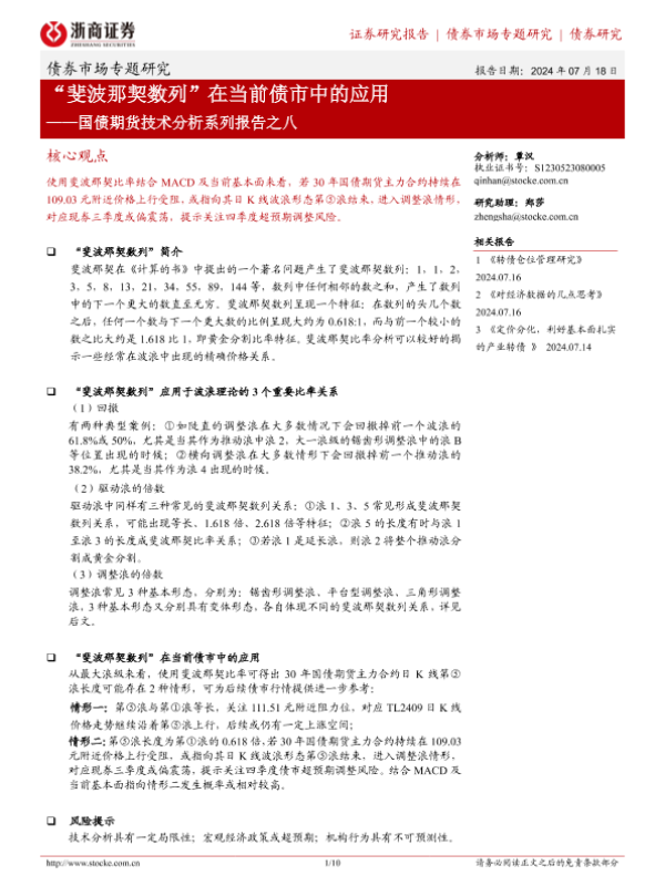 【浙商证券】【20240718】“斐波那契数列”在当前债市中的应用——国债期货技术分析系列报告之八-10页 行业研究