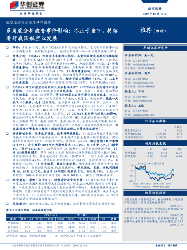 【华创证券】【20190318】航空运输行业深度研究报告:多角度分析波音事件影响-20页 行业研究