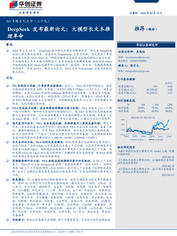 【华创证券】【20250219】计算机行业AI+专题系列点评(二十九):DeepSeek+发布最新论文,大模型长文本推理革命-11页 行业研究