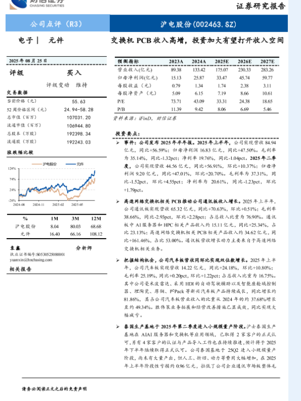 【财信证券】【20250825】沪电股份-交换机PCB收入高增,投资加大有望打开收入空间-4页 证券期货研究报告