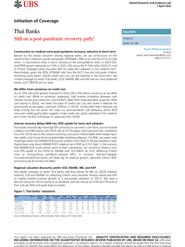 【瑞银】【20220407】瑞银-亚太地区银行业-泰国:还在大流行后的复苏道路上吗-41页 行业研究