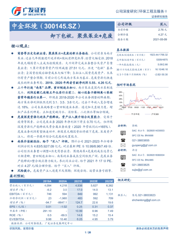 【广发证券】【20210509】卸下包袱,聚焦泵业+危废-26页 行业研究