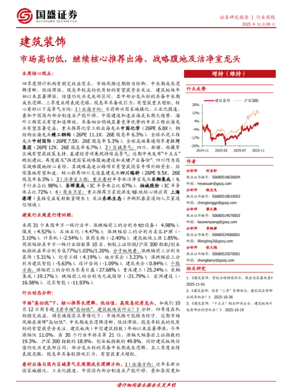 【国盛证券】【202511】建筑装饰_市场高切低_继续核心推荐出海_战略腹地及洁净室龙头-12页 证券期货研究报告