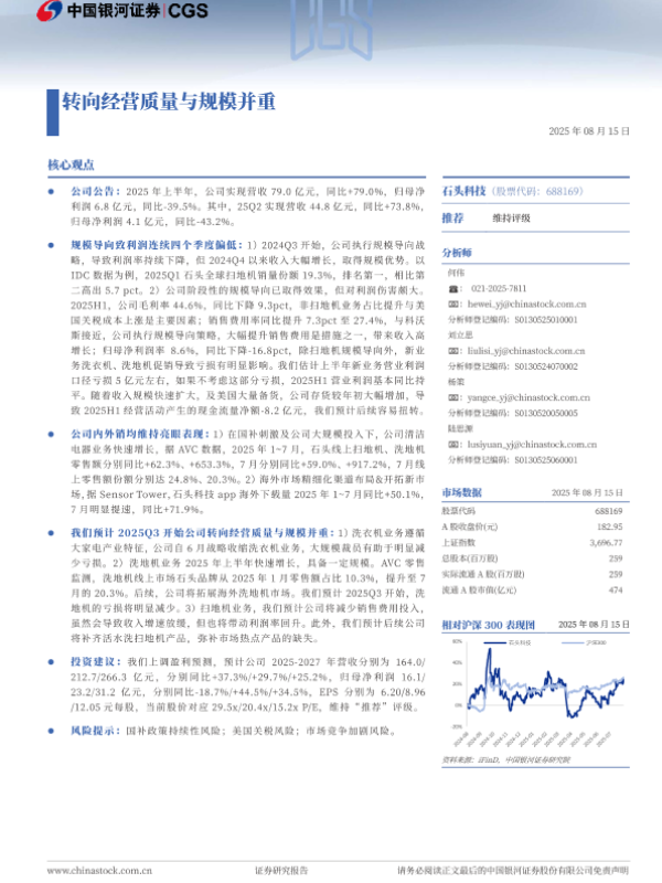 【银河证券】【202508】石头科技转向经营质量与规模并重-15页 公司研究