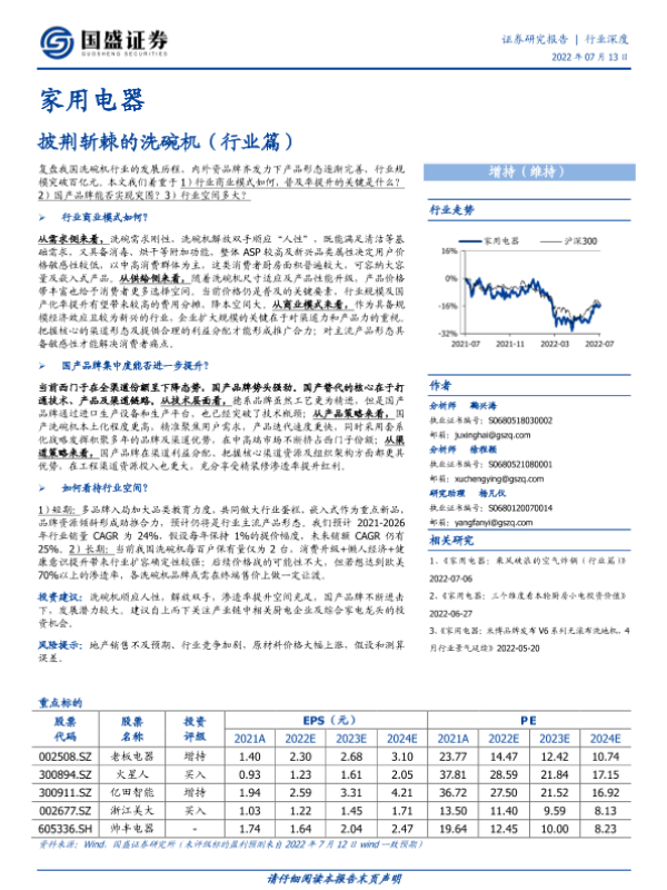 【国盛证券】【20220713】家用电器:披荆斩棘的洗碗机(行业篇)-23页 行业研究