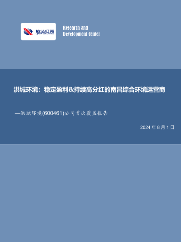 【信达证券】【20240801】洪城环境-600461.SH-公司首次覆盖报告:稳定盈利&持续高分红的南昌综合环境运营商-27页 行业研究