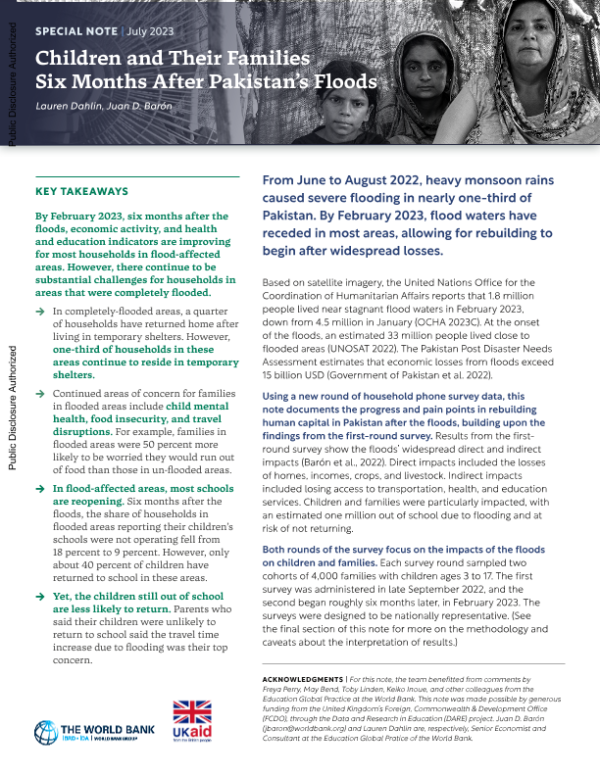 【世界银行】【20230701】世界银行-巴基斯坦洪灾六个月后的儿童及其家庭-12页 行业研究