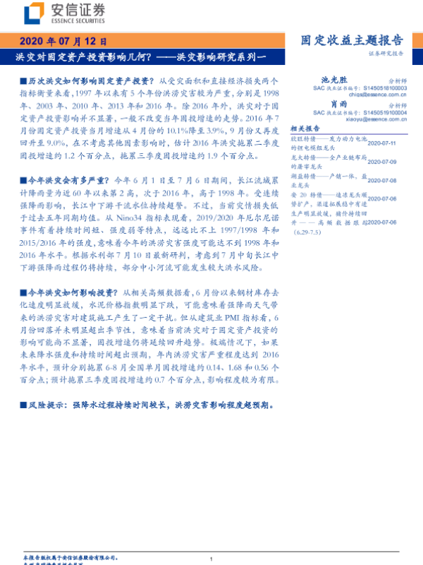 【安信证券】【20200712】洪灾影响研究系列一:洪灾对固定资产投资影响几何?-9页 行业研究