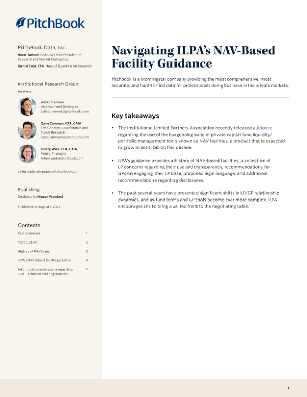 【PitchBook】【20240801】PitchBook分析师注:导航ILPA的基于导航的设施指南-8页 指南