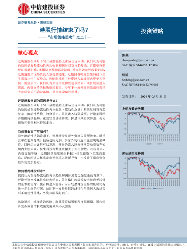 【中信建投证券】【20240531】“市场策略思考”之二十一:港股行情结束了吗?-13页 行业研究