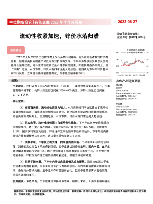 【中信期货】【20220627】有色金属2022年半年度策略:流动性收紧加速,锌价水落归漕-20页 行业研究