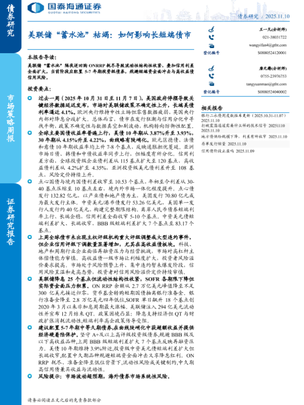 【国泰海通证券】【202511】美联储“蓄水池”枯竭:如何影响长短端债市-12页 证券期货研究报告
