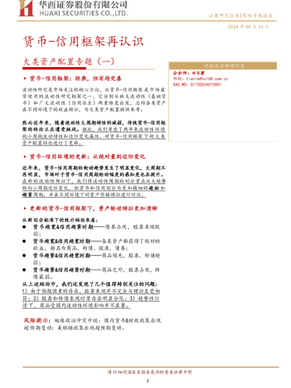 【华西证券】【20240416】大类资产配置专题(一):货币-信用框架再认识-21页 行业研究