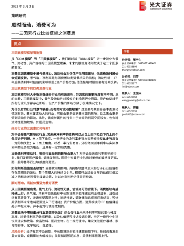 【光大证券】【20230303】三因素行业比较框架之消费篇:顺时而动,消费可为-31页 行业研究