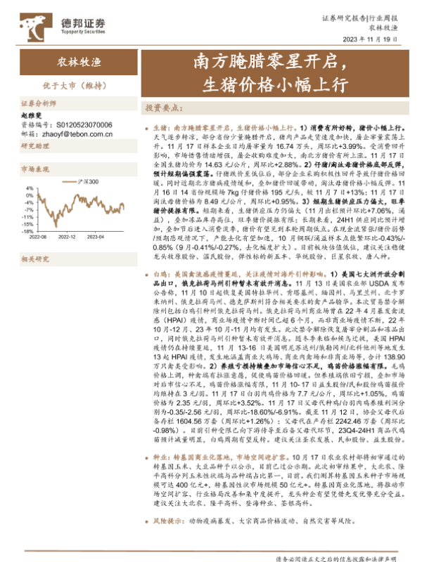 【德邦证券】【20231119】20231119-德邦证券-农林牧渔行业周报:南方腌腊零星开启,生猪价格小幅上行-17页 行业研究