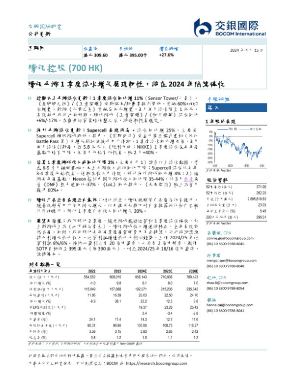 【交银国际】【20240415】腾讯手游1季度流水增长展现韧性,将在2024年陆续确收-7页 行业研究