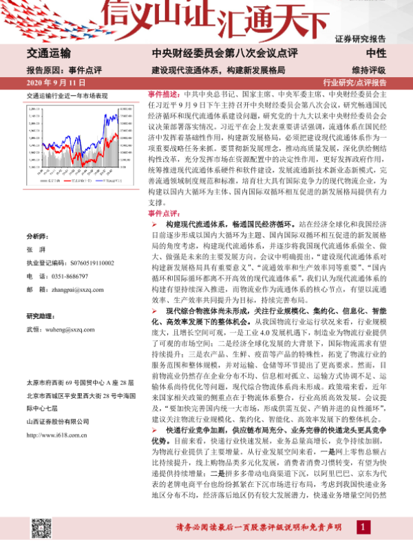 【山西证券】【20200911】中央财经委员会第八次会议点评:建设现代流通体系,构建新发展格局-12页 行业研究