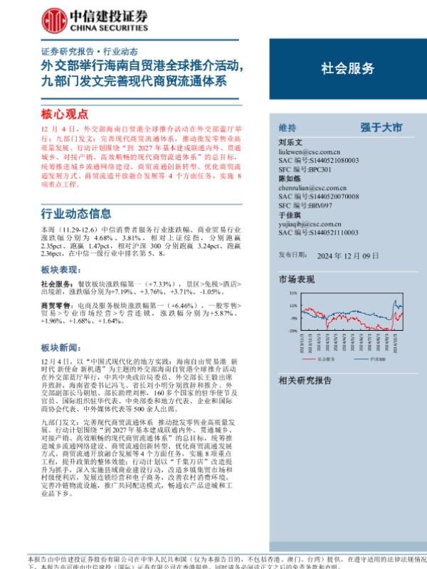 【中信建投证券】【20241209】社会服务行业:外交部举行海南自贸港全球推介活动,九部门发文完善现代商贸流通体系-25页 行业研究