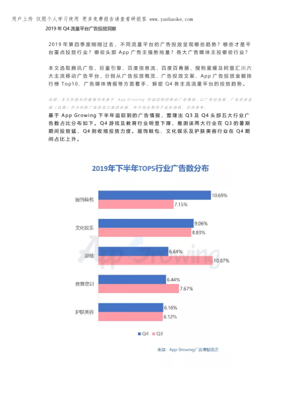 【App Growing】【2019】2019年Q4流量平台广告投放洞察-15页 市场调研