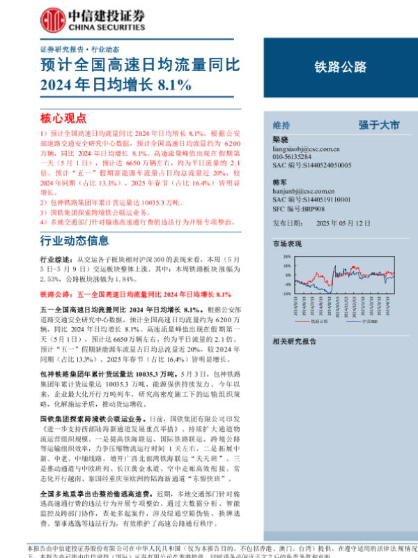 【中信建投证券】【20250512】铁路公路行业:预计全国高速日均流量同比2024年日均增长8.1%-12页 证券期货研究报告
