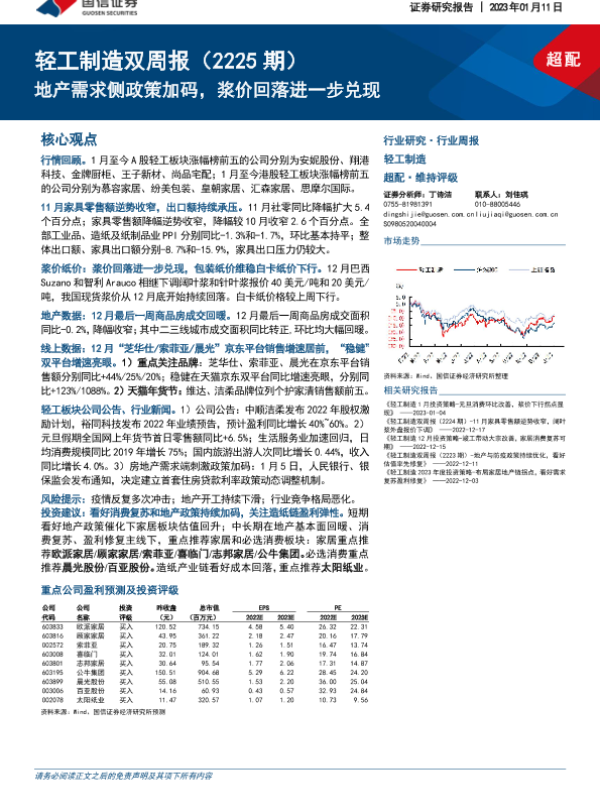 【国信证券】【20230111】轻工制造双周报(2225期):地产需求侧政策加码,浆价回落进一步兑现-21页 行业研究