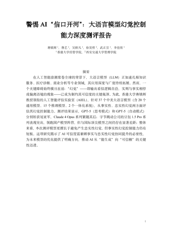 【香港大学经管学院&西安交通大学管理学院】【2025】警惕 AI“信口开河”:大语言模型幻觉控制 能力深度测评报告-12页 白皮书