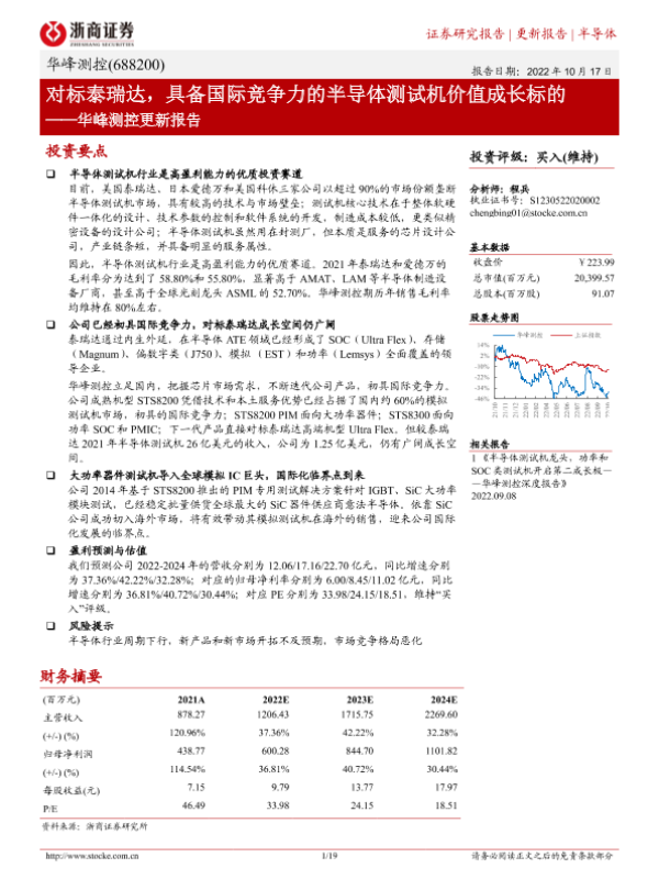 【浙商证券】【20221017】华峰测控更新报告:对标泰瑞达,具备国际竞争力的半导体测试机价值成长标的-19页 行业研究
