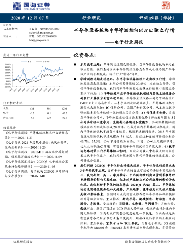【国海证券】【20201207】电子行业周报:半导体设备板块中华峰测控何以走出独立行情-20页 行业研究