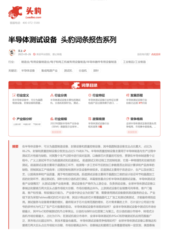 【头豹研究院】【20230526】半导体测试设备 头豹词条报告系列-17页 行业研究