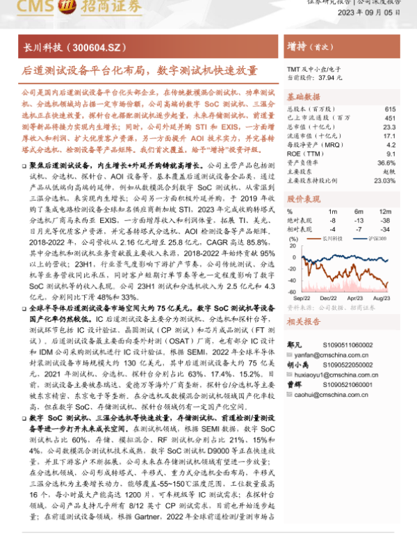 【海通证券】【20230905】长川科技-后道测试设备平台化布局,数字测试机快速放量-28页 行业研究