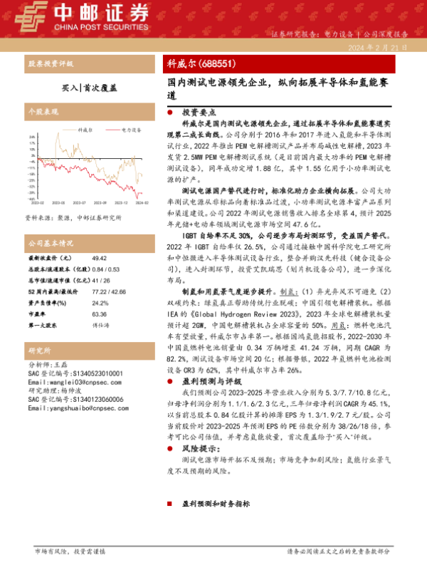 【中邮证券】【20240221】中邮证券-科威尔-688551.SH-国内测试电源领先企业,纵向拓展半导体和氢能赛道-20页 行业研究