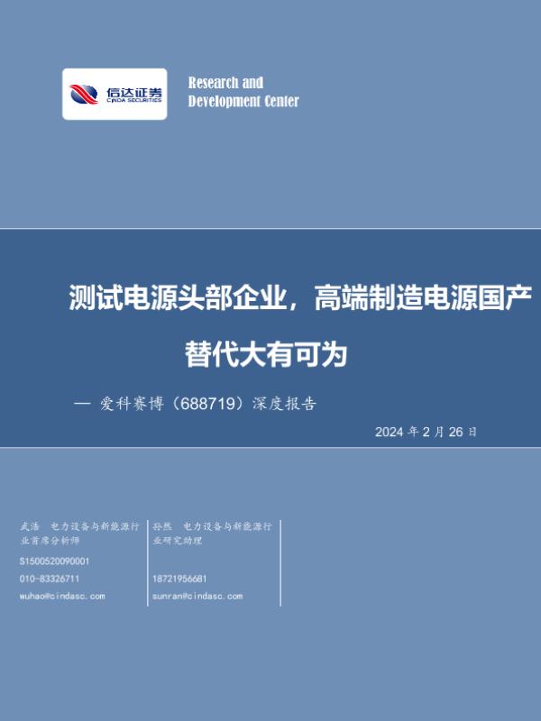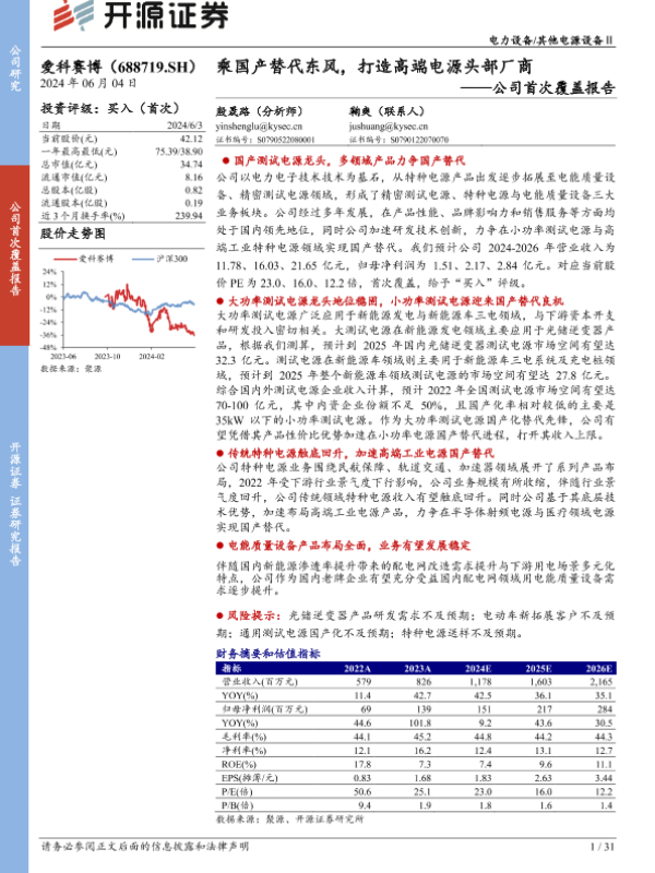 【开源证券】【20240604】爱科赛博-公司首次覆盖报告:乘国产替代东风,打造高端电源头部厂商-31页 证券期货研究报告